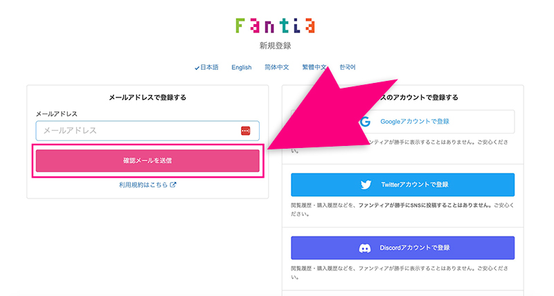 ここからファンティアの登録方法について、画像付きで詳しく解説していきます。
